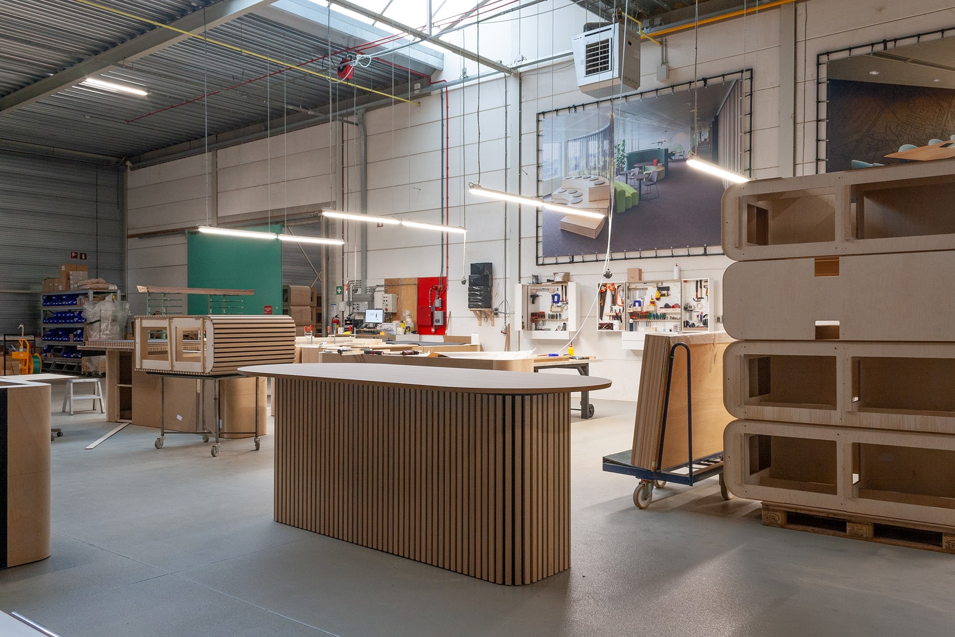 In Schijndel worden alle meubels in eigen huis geproduceerd. Deze aanpak zorgt voor constante kwaliteit, flexibiliteit in maatwerk en gecontroleerde, duurzame productie.