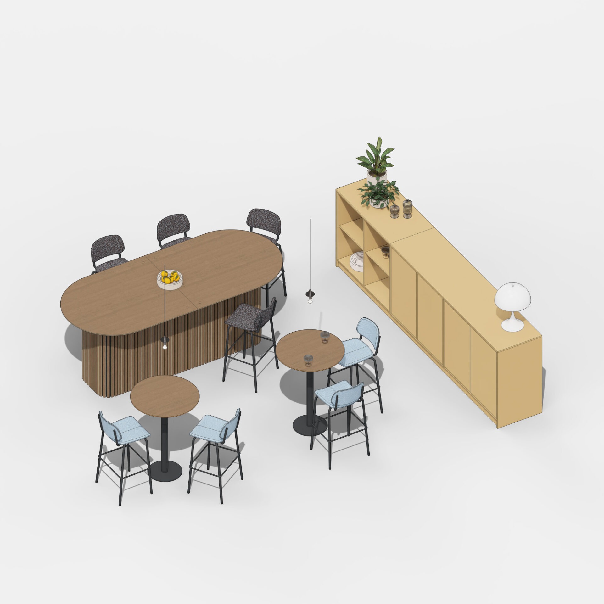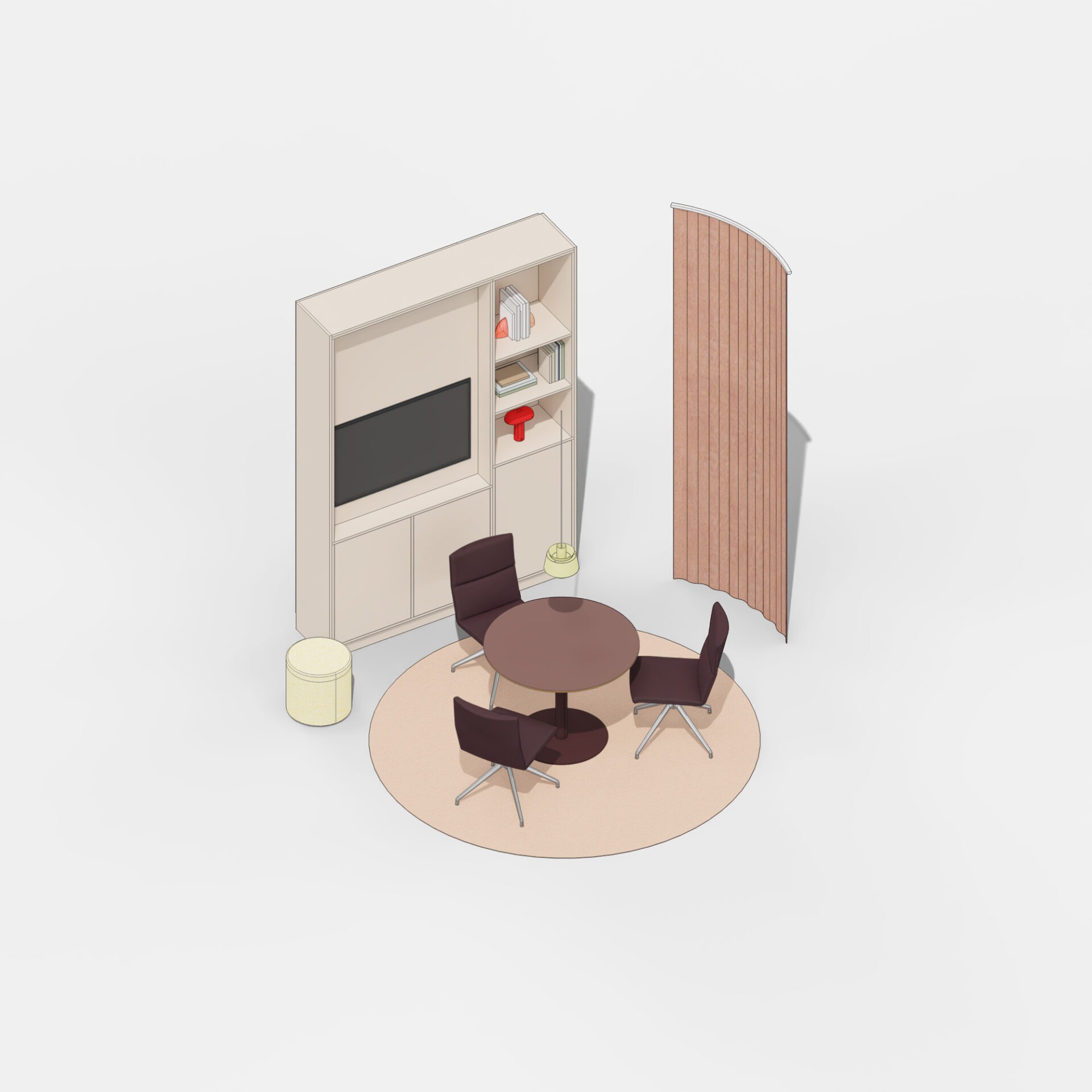 Bij Lande denken we in settings: ruimtes waar meubels, materialen en functies elkaar versterken. Zo creëren we plekken die aansluiten op hoe mensen werken, overleggen en ontmoeten.