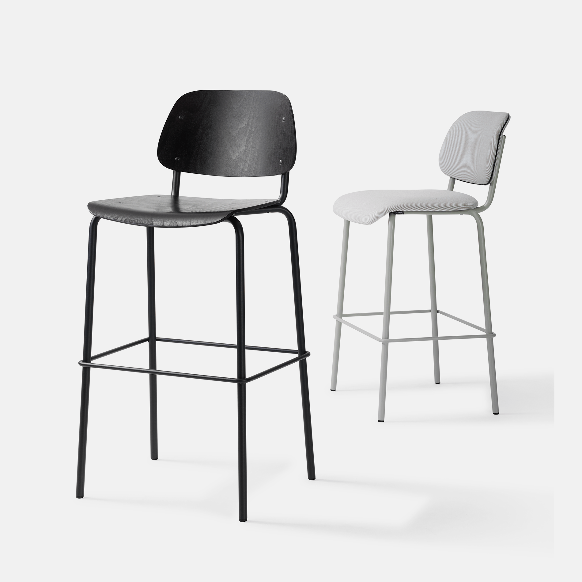 Kies uit verschillende zithoogtes, materialen en afwerkingen om de Jami volledig af te stemmen op jouw project. Van gestoffeerde zitting tot gebeitst hout, met een onderstel dat past in elke ruimte.