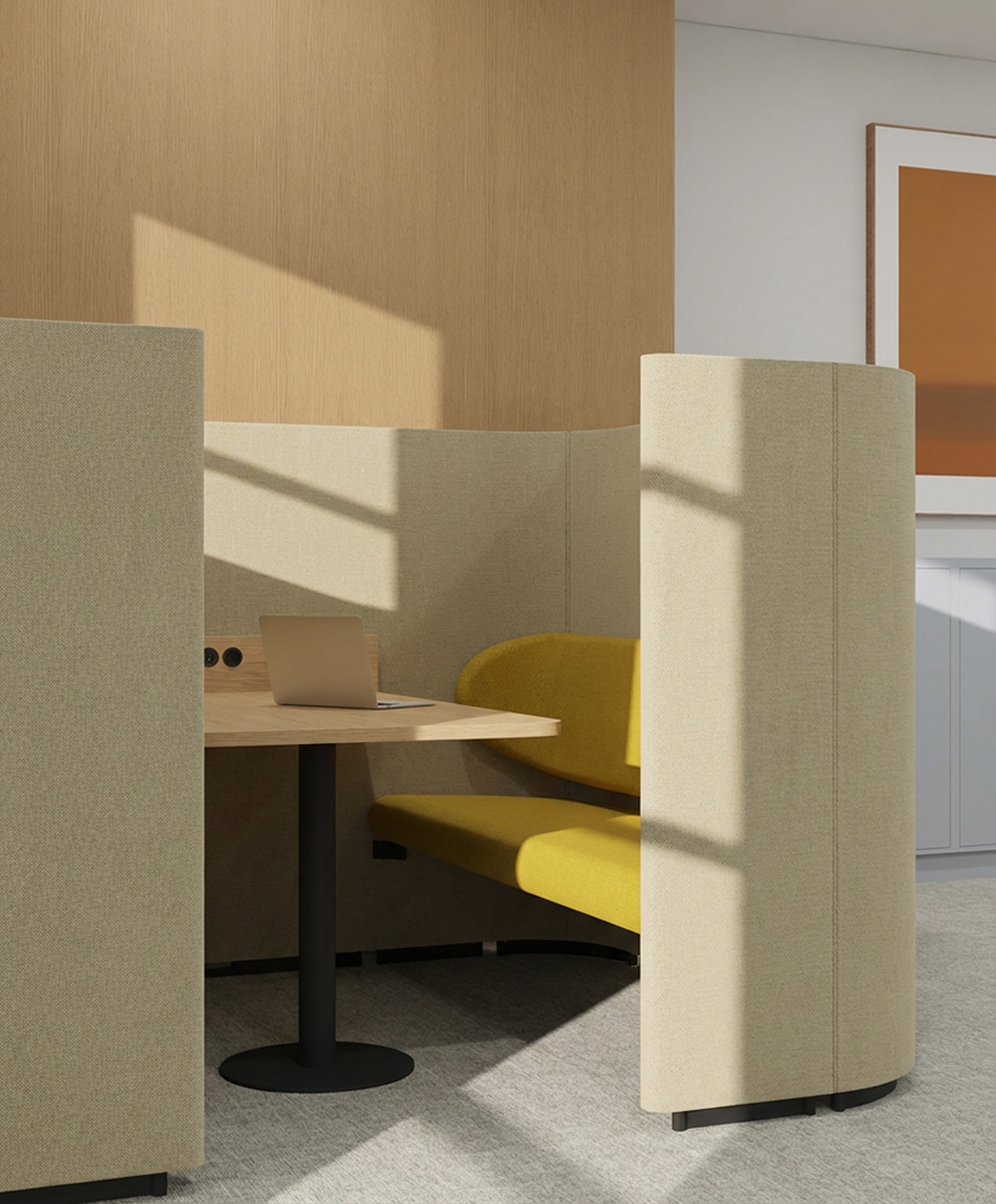 Specificaties Materialen DownloadsMet de Rondo Box zet je in één stap een dynamische ruimte om in een rustige werkplek. Ideaal voor telefoongesprekken, brainstormsessies of ongestoord werken. Deze akoestische werkplek biedt een afgeschermde omgeving zonder de verbinding met de rest van de ruimte te verliezen.