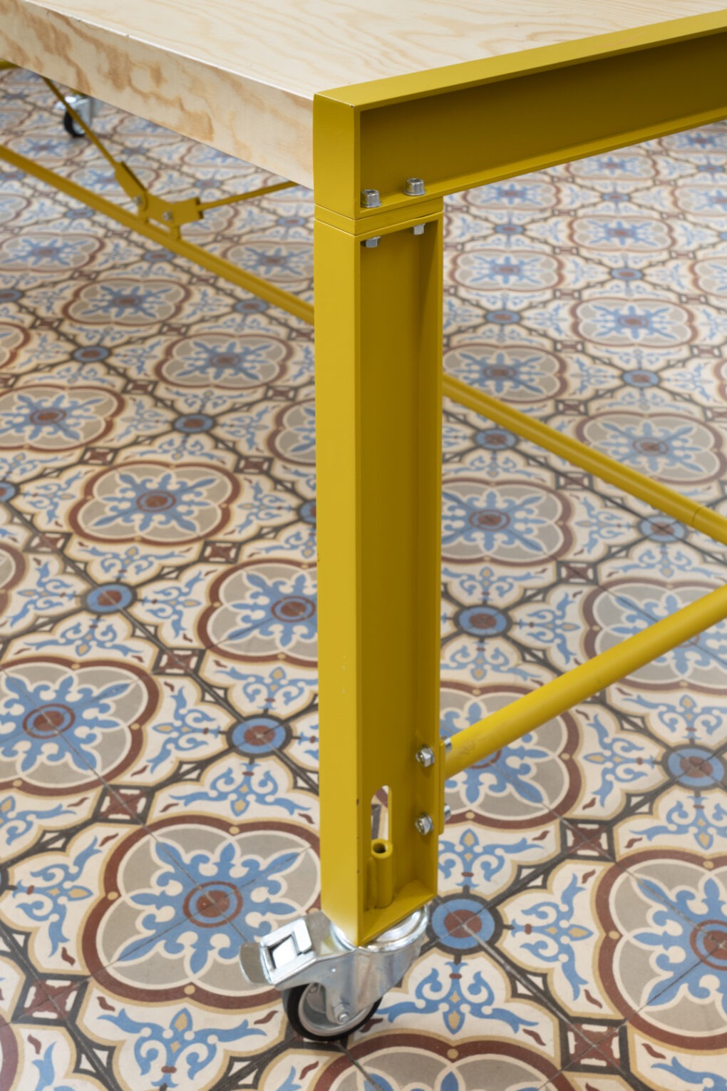 Atelier combineert functionaliteit en flexibiliteit in een strak, industrieel ontwerp. Door de wielen is de tafel eenvoudig te verplaatsen.