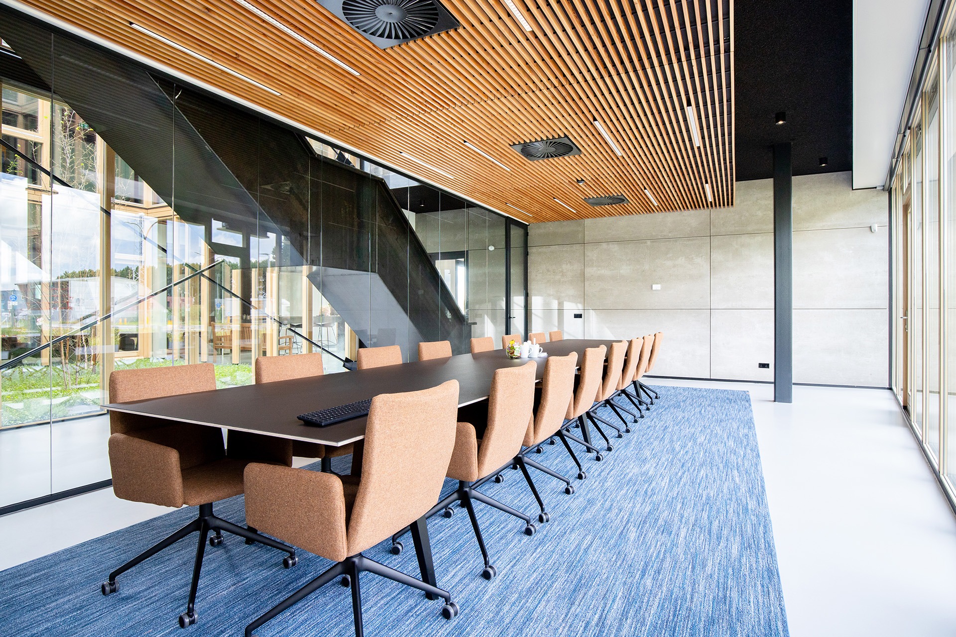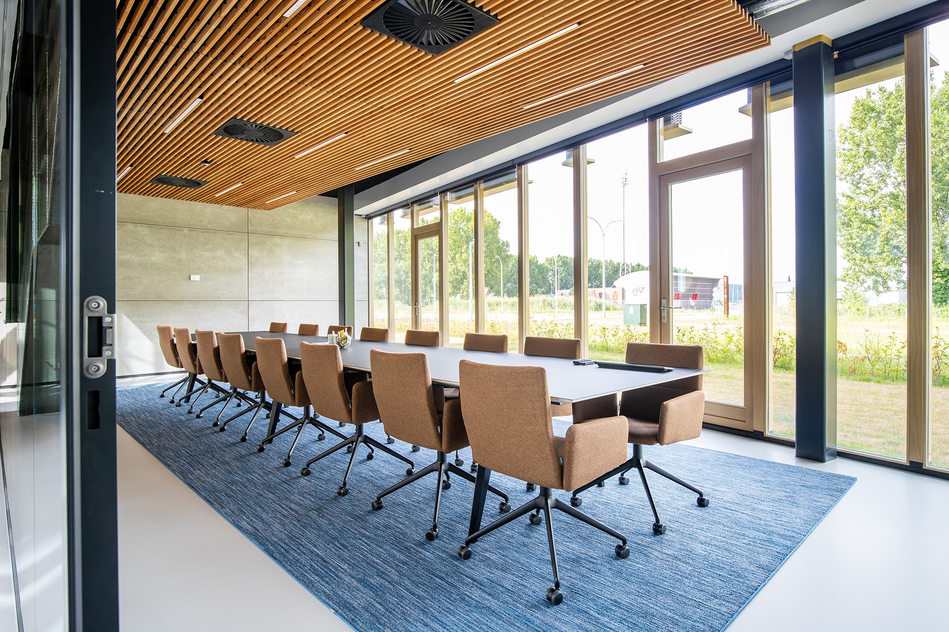 Voor het pand van Muller Beltex in Pijnacker werkte Officious het interieurconcept uit. De architect legde de basis, Officious gaf het karakter – met zorgvuldig gekozen materialen en meubilair.