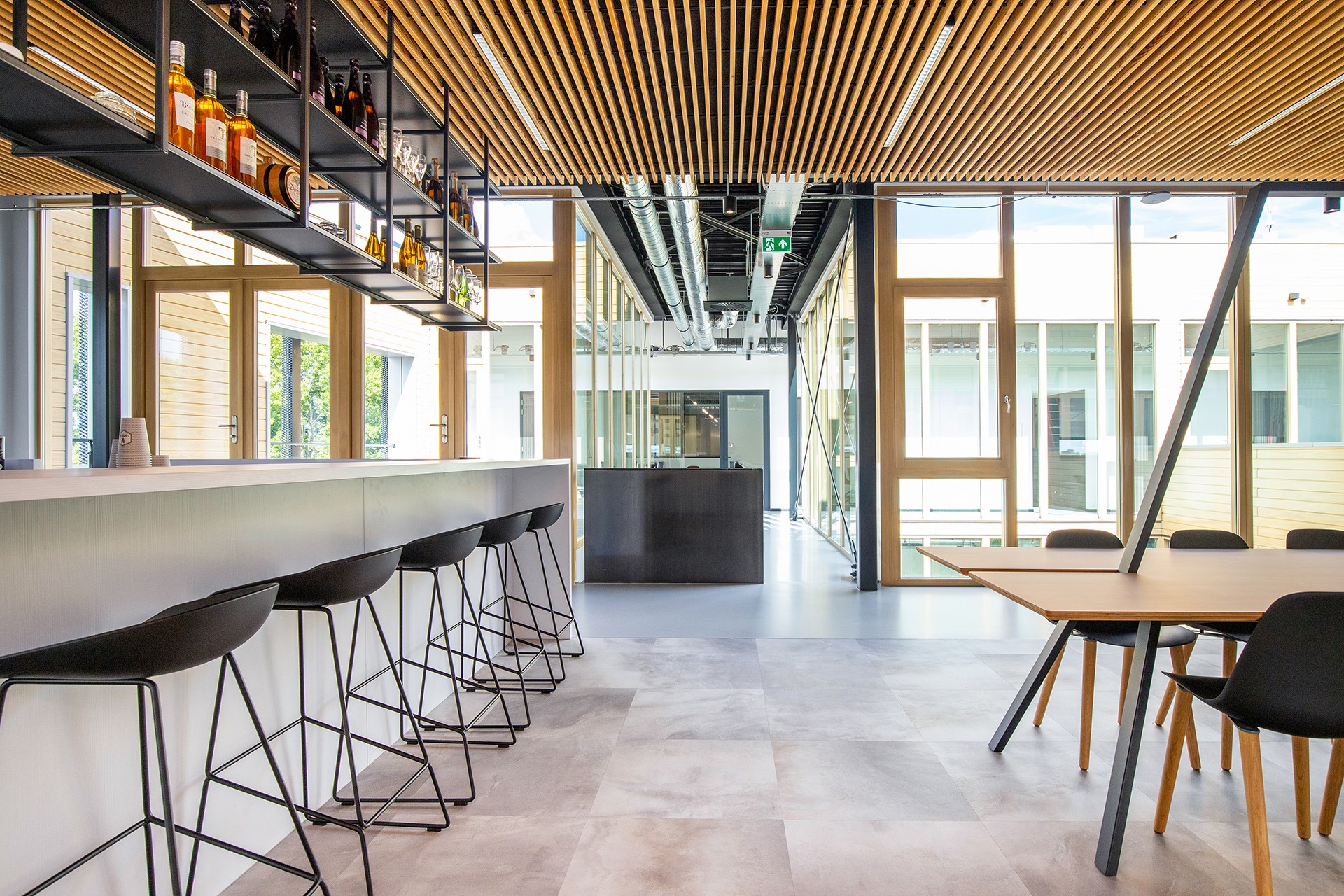 In de open ruimtes zorgen de Dock tafels van Lande voor structuur en een heldere lijnvoering. De Casual stoelen sluiten daar naadloos op aan: ingetogen, comfortabel en passend bij de lichte uitstraling van het interieur.